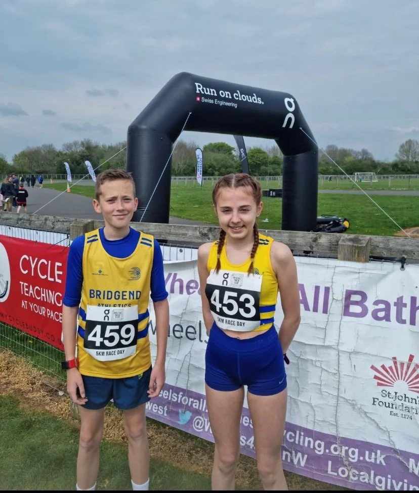 A few athletes took to the road for Bristol Track Club’s 3k/5k, which wasn’t held in Bristol but in Bath’s Odd Down Cycle Circuit. St George’s day brought gusty conditions to the cycle track. But that didn’t seem to slow our youngsters down much, Rhydian was 6th over the line and Katie 11th – she sped in with a fine first place for the girls.